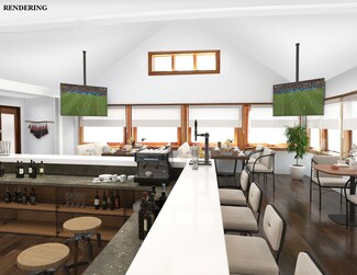The 7,684 SF space, is a new restaurant buildout with over $400,000 invested in buildout upgrades (windows, plumbing, electrical, HVAC, roofing, framing, lighting), includes a basement for storage and a lower-level entertainment and bar area. Only drywall and final construction details are needed.