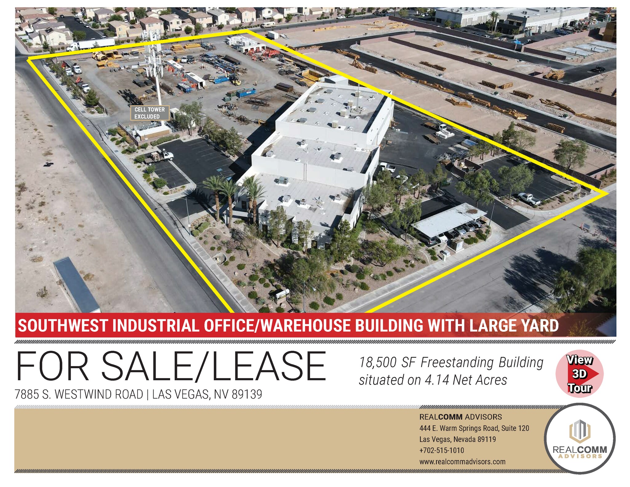 Huge Yard! 18,500 SF Freestanding building situated on 4.14 net acres consisting of 6,000 SF high image office with 9 private offices, an executive office suite, conference room, a kitchen, break room , 3 restrooms, reception area, and a large bull pen/open office area. The remaining square footage includes a 2,500 SF HVAC storage space and a 10,000 SF evaporative cooled warehouse serviced by 6 18'x20' motorized grade level loading doors and 1 10'x12' grade level loading door, and a sand/oil separator. There is also a separate wash out facility and 34 parking spaces (6 covered).