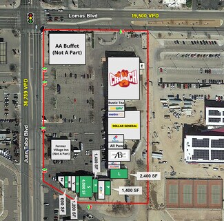 The property is located at the high traffic intersection of Juan Tabo and Lomas boulevards. A staggering 56,000 vehicles come through this intersection with Interstate 40 being just a half mile south and directly west of the Manzano High School. This immediate area is seeing new life with the brand new Peter Piper Pizza, Starbucks, Wecks and the redeveloped Rio Vista apartments. Other surrounding tenants include Albertsons, McDonald's, Wendy's, Hobby Lobby and Pizza Hut.