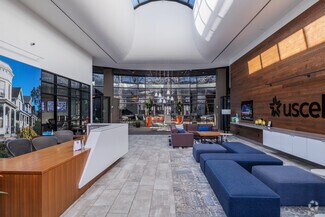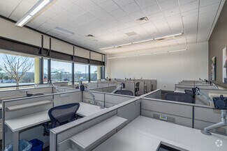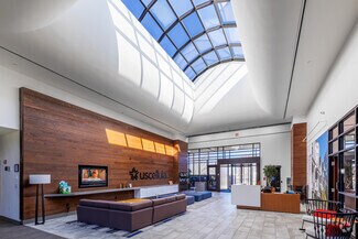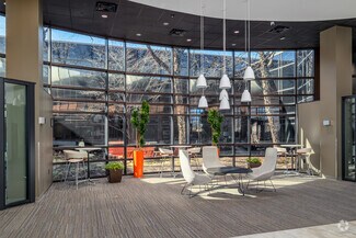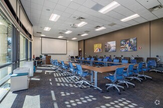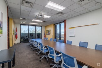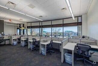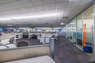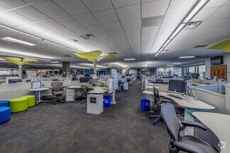 The US Cellular Customer Care Center at 800 Cornerstone Drive offers an expansive, turnkey office experience a stone's throw from Hardin Valley. High ceilings and a skylight welcome guests into a bright, airy environment accented by floor-to-ceiling windows, LED lighting, and other energy-efficient upgrades throughout the building. The office was designed with employee amenities in mind and features a large market and break area with industrial-sized appliances, comfortable interior booth seating, exterior patio seating, an open-air atrium in the center of the building, and showers in the restrooms.