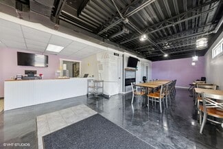 The property features a commercial-grade kitchen with an Ansul fire suppression system, a large restaurant hood, and all copper plumbing. Interior improvements include three restrooms, two to three units of space, and a functional design that supports multiple business configurations. With central air conditioning, forced air heating, and electrical service rated at 201–600 amps, the property is equipped for modern operational needs.