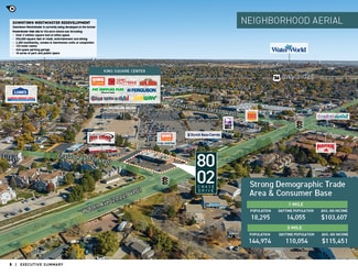 Strategically located at a high-visibility, signalized intersection (West 80th Avenue & Chase Drive) just off heavily trafficked Sheridan Boulevard, the Property benefits from significant consumer cross-over traffic and drive by exposure to over 62,000+ vehicles per day. It is shadow-anchored by a top-performing King Soopers (1.2M+ annual visits in the past 12 months) and surrounded by national retailers such as Pet Supplies Plus, Dutch Bros. Coffee, Taco Bell, and Burger King. The robust trade area further enhances appeal with a dense population of over 144,900 and average household incomes exceeding $115,400 within a 3-mile radius.