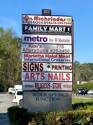 Just minutes away from the Marietta Square, this 17,500 sq ft building is home to many businesses from services, entertainment, and restaurants. 803 Powder Springs St. has ample parking (88 or approx 5.06 / 1,000) with prime visibility, large signage, and 26,900 traffic counts. Easy access to GA-120 and I-75. Suites available: 1,271 sq ft - 2,336; and an end unit with a drive through