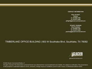 New single story unique Professional Office Building construction in the heart of Southlake, Texas. Directly across the street from the new 34 lot multi-million dollar residential home development and large fountain on the main thorough fare of 1709 Southlake Blvd. Zoned for professional office only, not medical.or retail.
