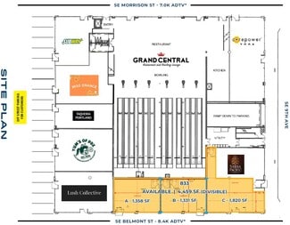 2nd-Generation Restaurant / Retail / Service and Office Space in Buckman Neighborhood -------------------- Office Space: ±3,050 SF (Mezzanine Level) Lease Rate: $27 psf MG Available Now Retail Suite 833: 1,331 - 4,459 SF (Street Level) Lease Rate: $25 - $27 psf NNN Available Now -------------------- Property Features: • 2nd Generation Restaurant / Retail / Service and Office Space • Customer Parking Options include On-street, Off-street, and a Large Parking Garage. • Parking Ratio 1.96 / 1,000 SF • Co-tenants include Grand Central Bowl & Arcade, Subway, Taqueria Portland, CorePower Yoga, and Lush Collective Salon, Yum’s PDX Pizza, WELCOME MISS ORANGE! -------------------- Location Features: • Adjacent to the Goat Blocks (247 Unit Apartments) • Located in the “Walkable” SE Neighborhood of Buckman with nearby Transit including Portland Streetcar and TriMet Bus Lines 6, 12, 19, 20, and 70. • Nearby Inner Eastside Highlights: Afuri, Bao Bao, Olympia Provisions, Dos Hermanos Bakery, Market of Choice, Kachka, Cascade Brewing Barrel House, Hopscotch, Portland Coffee Roasters, Ironside Training and more.