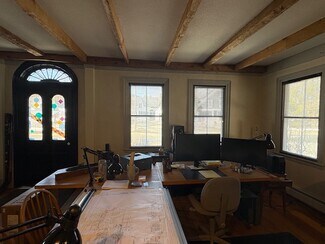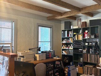 Perhaps the premier office space in historic Woodstock Village! This highly visible location is prominently situated directly on Central Street, in a classic free standing brick building! The included amenity of providing off street parking for 4 vehicles is a benefit rarely found in Woodstock Village! The ground floor features an open floor plan, with attractive exposed beamed ceilings, wood floors and practical built ins. This very flexible space can be utilized as one large open workspace or it is easily visualized with 4 individual office areas. A 3/4 bath and kitchenette area complete the first floor. A central staircase leads to 2 additional second floor offices. The larger second floor office (21x11) presents a private space for use as an executive office or as a conference room. Heat is included in the rent! A unique Woodstock Village office opportunity, with a commanding presence!