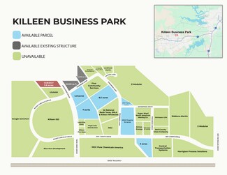 811 North Twin Creek Drive falls under an M-1 (Manufacturing Zone), which allows for light to medium industrial or commercial uses. 811 Twin Creek Drive also provides strategic access to several commercial airports, major interstates and highways. Killeen and this site are central to 8 institutions of higher learning within a 60-mile radius and is home to the 2nd largest military base, which provides the opportunity to utilize military testing facilities as well as the military workforce pipeline. The Killeen Business Park has been a premier choice for companies seeking logistical convenience, a skilled workforce and space for future development within the Central Texas region. The park currently has a diverse range of companies occupying its sites from manufacturers such as Mitsubishi Gas Chemical (MGC)-Pure Chemicals America (MCPA) and Z-Modular. Current employers in the park include the 1st National Bank Texas Foundation, the USAMM headquarters, an MCI call center and a diverse range of other industrial and commercial companies. The Park continues to attract companies seeking a strong and connected presence to major markets with access to infrastructure and flexibility to scale operations as the business grows.