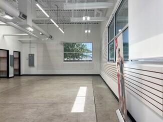 Open, well lit, functional space ready for occupancy. Two restrooms, HVAC, concrete and wood floors, private office, two changing rooms, lighting and window covering in place.