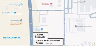 Commercial property with Frontage on U. S. 49, with approximately 25,000 vehicles per day pass by. A curb cut guarantees that your business will have access to U. S. 49, as well as a rear exit out into the town of Brookland on Oak Street. That is traffic that you can build a business on, whether it is a restaurant, Coffee, Donuts, Medical, Hardware or a bank. This location puts your business right in the traffic between the City of Jonesboro and Paragould, AR. All utilities are in place for this property.