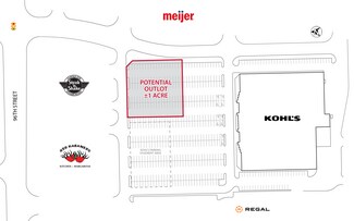 Positioned at the convergence of Indianapolis and Fishers, this ±1-acre outlot offers a premier retail development opportunity in one of the region’s most active commercial corridors. Located directly in front of Kohl’s and shadow-anchored by Meijer, Staples, and Regal Cinema, the site benefits from exceptional visibility and built-in consumer traffic. It sits across from a Walmart Supercenter and is surrounded by a dense mix of national retailers, restaurants, and hospitality brands, creating a dynamic retail ecosystem.