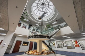 Food production headquarters located in Fairport, NY including office, cafeteria, locker rooms, production area and high bay warehouse space. The facility offers heavy power supplied by Fairport Electric, rail access, ceiling heights ranging from 21'9" in the production area to 36'3" clear in the warehouse area. Distribution area includes an automated racking system containing 15,000 pallet positions. Fantastic location with numerous walkable amenities.