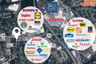 Newly renovated with great co-tenancy, vanilla shell delivery, growing retail area, easy access to Hwy 29, I-85, and I-26. Includes drive-thru. Located near major retailers: Kohls, Target, Hobby Lobby, Sam's Club, Costco, Lowes, Home Depot, Chick-Fil-A, Panera Bread, PetSmart, Walmart, Aldi, and Starbucks.
