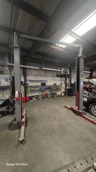 This auto repair shop is +/-6,300 sf and is being offered for sale at $1,395,000 or +/-$221/sf.  The building dimensions is +/-50’ X 126’ and contain 5 separate auto bays: (3) 12X12 roll-up doors and (2) 14X12 roll-up doors, a pit and three lifts.  There is also a customer reception/waiting area, office area and one restroom. The property is situated on +/-.53 acres of C2 zone land. There is ample on-site parking in front of the building and a fenced and gated +/-65’ X 80’ lot located adjacent and to the west of the building that can accommodate over 30 vehicles. The existing equipment is being sold separately. As a condition of the sale, the owner will be leasing back one of the auto bays located at the west end of the building for up to two years for personal storage after COE. This business was opened in 1992 and the shop ran successfully for over 30 years at this location. The owners retired 2 years ago when they closed the business.