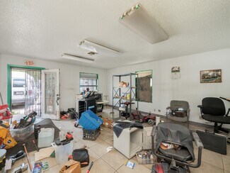 Excellent opportunity to own a versatile commercial property being sold as is. Fully fenced and highly functional, the property features an office building with two bathrooms, two lobbies, and five private offices - ideal for a range of business operations. Most of the lot is paved with concrete, providing durable, low-maintenance surface space for vehicles and equipment. At the rear of the property, you'll find a large, tall two-stall garage suitable for oversized vehicles or workshop use, along with an additional covered storage area for extra flexibility. Whether you're looking to expand your business footprint or invest in a property with built-in infrastructure, this site offers exceptional potential.