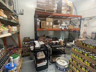 There is a Kitchen area (+/- 216 s.f.) for assembling of prepared foods. This room contains 4 refrigerators, 3 compartment sink, 2 handsinks and counters. There is no hood system. There is a large walk-in cooler (+/- 400 s.f.) for storage of kegs and other beverages.