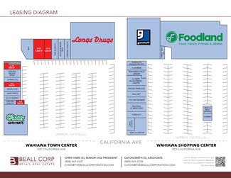 Wahiawa Town Center is located on California Avenue, consisting of 49,225 square feet and situated on 3.727 acres of land. It is home to Longs Drugs, Central Pacific Bank, Super Cuts and more. Wahiawa Shopping Center is adjacent to Wahiawa Town Center, consisting of 68,831 square feet and situated on 3.223 acres of land. It is home to Foodland, Goodwill, Cricket Wireless, Pizza Hut, Taqueria El Ranchero, and more. The centers receive over 1.7M visits per year and are within walking distance from Wahiawa General Hospital, Schofield Barracks, Whitmore Village, Wheeler Army Airfield, as well as a dense residential population.