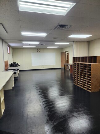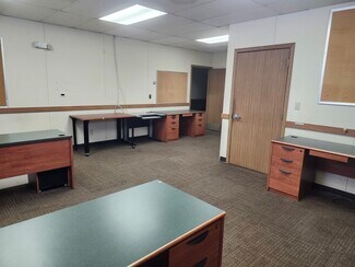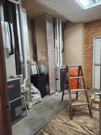 Office space on first floor available October 1, 2025. Formerly a State Police office. ADA compliant space. Extensive asphalt parking in front, side and back of building. Could be one office, or divided into multiple offices. Updated LED lighting. Currently 2 separate exterior entrances. Willing to divide or update space to suit. Basement (available October 1, 2025) is separate space with 2 man doors and 1 overhead door, flex space, and it's own restroom with shower. Brand new generator will run building at times of outage. Lighted parking lot, Fenced area. Cell Tower on property with available space. Security Keypads, Security doors on first floor