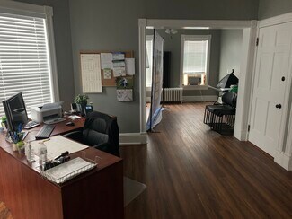 The fully furnished 2nd floor Office Space can be divided or leased in whole - it is centrally located in Kingston's Arts District is ideal professional office, and creative space. Includes green space with fruit trees for outdoor sitting and eating. Walking distance to the main post office, dozens of small creative makers, small businesses, restaurants, and next door to a printing company. Comfortable interior design with lots of natural light, second and third floor has views of the City. The road frontage of this property is part of Kingston's Greenline bike path. Kingston is growing and has been recently written about in the NY Times, Vogue, the Wall Street Journal and many more national publications.