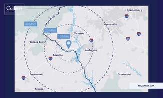 ±65 acres are available for sale along Interstate 85 at Exit 4 in Fair Play, SC (Oconee County). The land is undeveloped and unzoned, allowing for maximum flexibility for a variety of uses. All utilities on-site Blue Ridge Electric Cooperative Pioneer Rural Water District Oconee County Sewer (2027 completion) Upcountry Fiber Fort Hill Natural Gas Tax Map No.: 341-00-02-028 341-00-02-012 341-00-01-010 341-00-01-011 341-00-02-031