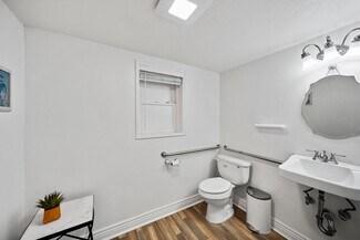 8338 Brentwood Blvd: Approximately 1,196 sq. ft., this unit is currently vacant and was previously utilized as a mortgage office. The layout includes three private offices, an open-concept foyer, one half bath, a kitchenette, and dual entrances. Zoned for both residential and commercial use.