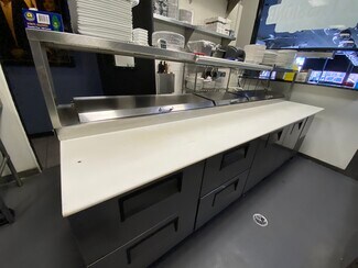 convection oven, meat slicer, dough mixer, pasta cooker, 10ft 4-drawer prep table, two 2-door reach in coolers, single door refrigerator, 1-door reach in freezer and so much more.