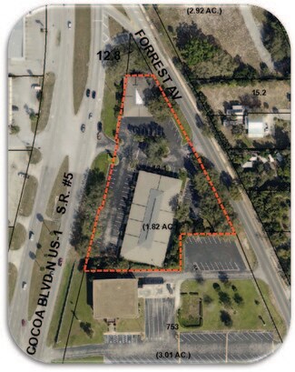 Newly renovated and upgraded office complex with excellent visibility in an appealing campus-like setting. Accessible via U.S. Highway One and Forrest Avenue, the property is .9 miles north of SR 520 Causeway and 2.4 miles south of State Road 528 (Beachline). The office complex is 4.7 miles from I-95 via State Road 520.