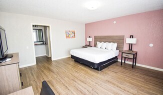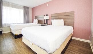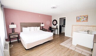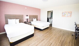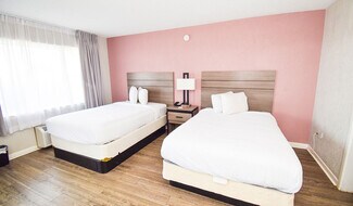 The Econo Lodge Inn & Suites is a Choice Hotels International-branded property. The hotel features 104 rooms spread throughout four buildings and two Doors. Each room features a desk with ergonomic chair, refrigerator, 32-inch LCD/Plasma television, microwave, and select rooms include a two-person hot tub. The common areas include a seasonal outdoor pool, vending machines, bus/truck parking, picnic area, and banquet room.