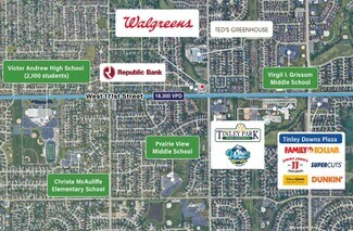 The 14,820-square-foot building is strategically located at the signalized intersection of West 171st Street and 84th Avenue, which experience a combined 23,400 vehicles per day. Its high visibility is further enhanced by Victor Andrew High School (2,100 students) and the Tinley Park – Park District, both of which draw continual traffic through the corridor. The property also benefits from proximity to South LaGrange Road (43,100 VPD) and Interstate 80 (122,400 VPD), making it easily accessible from major thoroughfares. Additionally, there are over 174,000 people living within a five-mile radius. The area is comprised of an affluent population that earns an average household income of $143,282 (within one mile).
