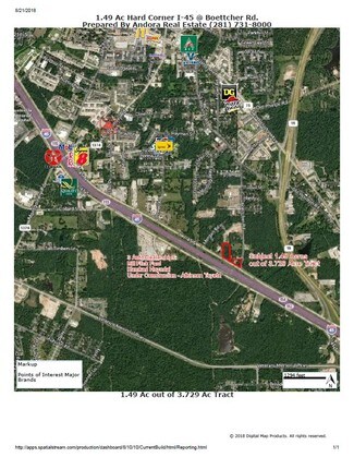 - 1.5 Acre property idea for vehicle/ trailer storage, mobile or tiny homes sales. -Great traffic count & visibility on I-45  - Located right off the I-45 exit ramp for FM1374/Montgomery Rd -Both tracts are cleared and ready to use - 610ft of total I-45 frontage - The two 1.5 acre tracts can be leased separately or as a whole - Price: $2,000 p/mth per lot
