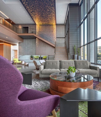 • Activated lobby and outdoor plazas with sitting areas for collaboration, a stage for events, and beautiful local art
