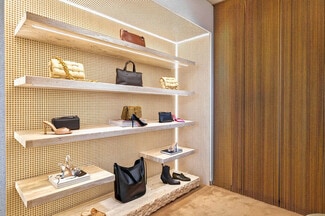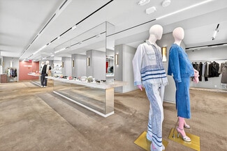 for a high-end retail brand, showroom, gallery, medical practice, or professional office. The interior features high ceilings, a spacious