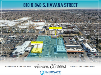 This property includes over 31,103 SF of building space on over 4 acres of land along Havana St in Aurora CO. Current tenants include NAPA Auto Care, Orejano Empanadas, and Camel Intl Market. Available spaces are located 810 S Havana St (Suite B/C)- 5,180 SF, and 840 S Havana St - 7,700 SF. The 840 S Havana St is an existing auto repair facility with one (1) drive-in door access, paint booth, undeground basement storage (2000+ SF) and an enclosed parking lot. Floor plans of each space are included in the leasing brochure.