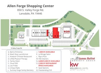 • Positioned at the busy, signalized intersection of Allentown Road and Valley Forge Road.