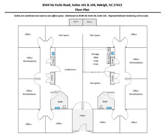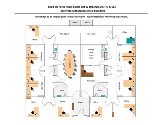 3000 sqft Furnished Office Space for Lease in Excellent North Raleigh Location. Easily accommodates up to 15 personnel. Convenient to I540, restaurants, shopping, medical services, banking services, and more. Office space has been meticulously maintained by tenants and owners. New HVAC systems installed in 2021. Network cabling updated in 2017.