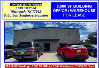 5 acres fenced with office warehouse built in 2000. Easy access to FM 2004, Highway 6 and I45.