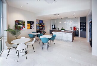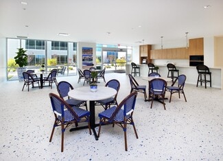 121 Commerce Center is a multi-building office park totaling approximately 370,000 square feet. The campus has a cohesive feel with zen-inspired landscaping and a 150-foot water feature centering the buildings. 121 Commerce Center has a simple leasing process and on-site management. Features include 10-foot ceilings, insulated walls separating the suites, high-grade carpet tiles, 9-foot cherry wood doors with high-end hardware, and in-unit thermostats. All offices are CAT-5e pre-wired and pre-terminated, ready to be used on move-in day. There are a number of on-site conveniences to elevate the workday. Some of these include daily dry-cleaning services, an indoor-outdoor self-service café with a food mart, shoe repair, and shared conference rooms that are reserved via a web-based system.