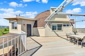 8560 and 8565 Holmes Lane ~ A Rare find ~ Custom-Built Geodesic Dome Home and a Classic Ranch Style Home too! Situated on 30 private acres. Zoned Ag 20. Land has previously hosted orchard trees and is currently used for dry crops. The main residence offers just over 2,500 square feet of living space, featuring 3 levels and a primary and ensuite on each floor, plus an additional half bath. The centrally located kitchen has a seamless blend of stainless steel and granite surfaces, Knotty Alder wood cabinetry, Limestone tile flooring, double ovens, 60-inch gas cooktop with a classic copper-finished exhaust fan. The spacious island provides numerous drawers, ample storage, and a secondary prep sink. All bedrooms provide plenty of storage space. Generous sized living room features several walk-out sliding glass doors, along with a separate den/office. With high ceilings and an abundance of windows, you can enjoy breathtaking views from every room! The entire interior has been freshly painted, and new carpets have been installed. Thoughtful designed recessed and spot lighting throughout. Energy efficiency is a priority, with two HVAC units in the main home and ceiling fans throughout. Power outages are no issue here! Generac generator is also included. Impressive grounds surrounding the property, including an inground pool and a lighted recreation court, perfect for a quick game of basketball, tennis, or pickleball. Convenient exterior full bathroom too! This space is ideal for entertaining associates, family and friends. A detached, finished workshop is equipped with two 50-amp outlets, central heating and air system, built-in workbench, oversized storage island topped with a stainless steel finish and plenty of cabinets and drawers. Partial bathroom, and a two-car garage. Additional amenities include a finished tool shed with lighting and electricity, plus a garden green house too! Enjoy spectacular 360-degree views of majestic mountain ranges surrounding this property. On clear days, look out for sights of the Sierra Nevada's, Sutter Buttes, Mount Diablo, and even catch glimpses of Mount Shasta. Experience the best fireworks show in town from your front deck on the Fourth of July, with views of displays from surrounding cities. This home has been meticulously maintained and has so many unique clever attributes to discover. You literally feel like you are on top of the world!
