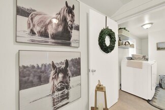 A secondary home is located at the base of the estate at 8565 Holmes Lane. This charming farmhouse is just under 1,200 sq.ft. offers three spacious bedrooms and one full bathroom. The open-concept living area includes indoor laundry (washer and dryer included), a well-sized kitchen (refrigerator included), and plenty of cabinets and countertop space. It also has central heating and air, separate well and brand new septic tank, and a detached four-car garage. Enclosed backyard with a wrought iron fence and beautiful established trees. This secondary home is perfectly situated for privacy from the main estate while being just down the road. Ideal as an in-law suite or income-producing rental.