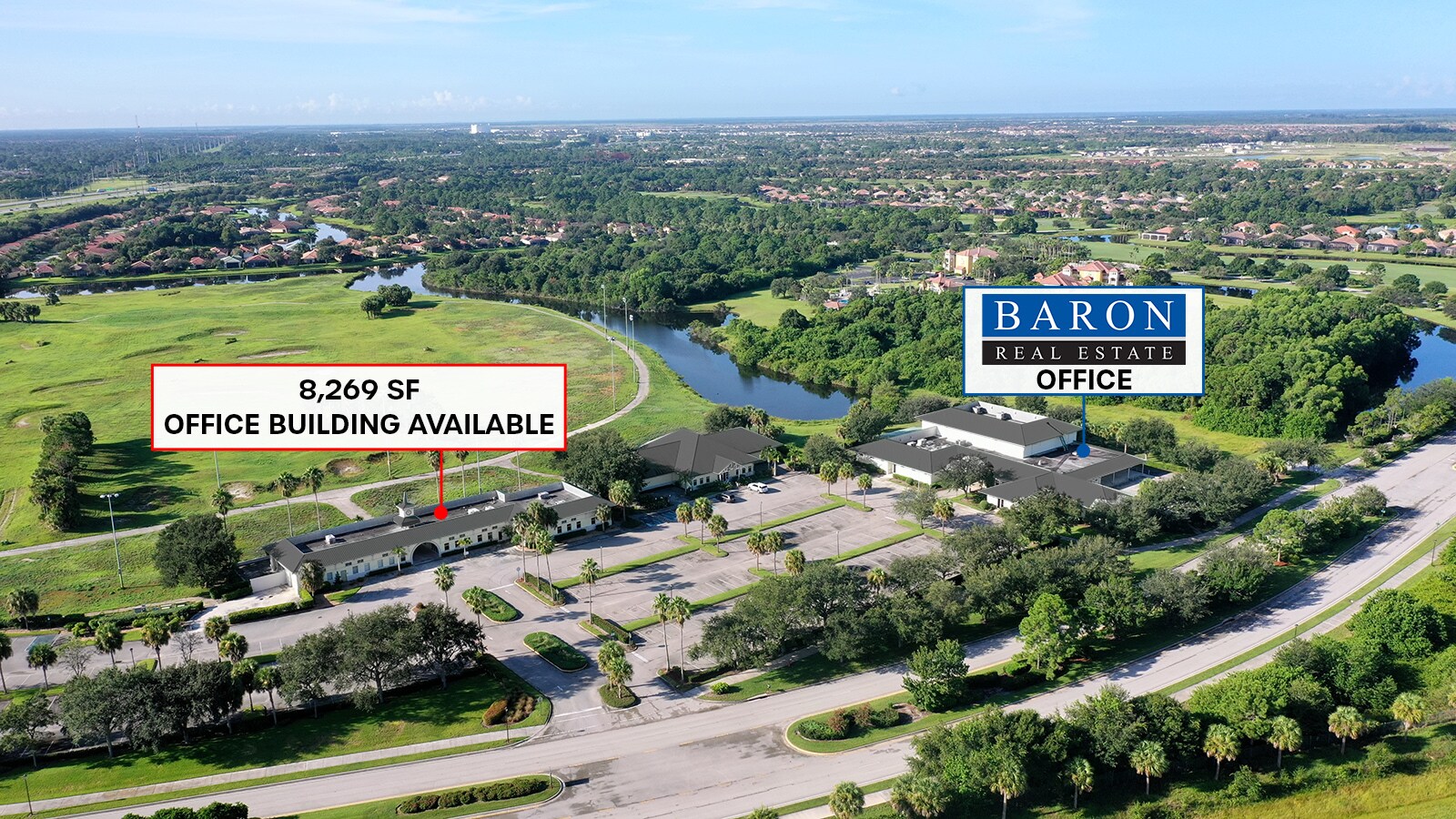 • The former PGA Learning Center Facility is subdivided into three sections; the current buildout features multiple open floor areas, private offices, reception desks, men’s and women’s restrooms, and an additional area that can be utilized as a café.