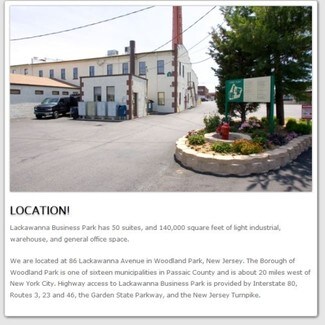 Flex industrial park located in Woodland Park with nearby access to routes 46, 3, 80 and GSP.