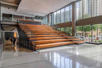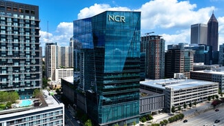 Showcasing a sleek, dark glass curtain wall and striking architectural design, the building makes a commanding statement on the Atlanta skyline. Inside, businesses will find fully furnished, turnkey environments that provide immediate productivity from day one. Engineered for flexibility, the property supports high-intensity technical uses while offering collaborative lounges, quiet focus areas, and a world-class fitness center with private lockers and showers. Expansive floor-to-ceiling windows and modern finishes create a light-filled, inspiring workplace with sweeping city views. Additional amenities include a yoga studio, outdoor terraces, bike storage, EV charging stations, and on-site dining options such as Mr. Merchant's grab-and-go market, Wired coffee shop, and Marche dining hall.
