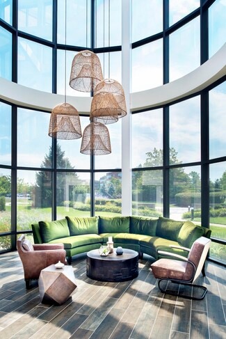 • Striking 4-story glass atriums.