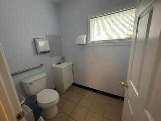 Commercial building for lease. Perfect for medical use. Offers 3 exam rooms, a procedure room, 2 offices, 2 bathrooms, receptionist desk with window looking out to the waiting room. Parking lot in the rear is not included in the lease.