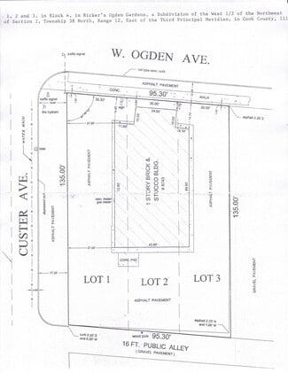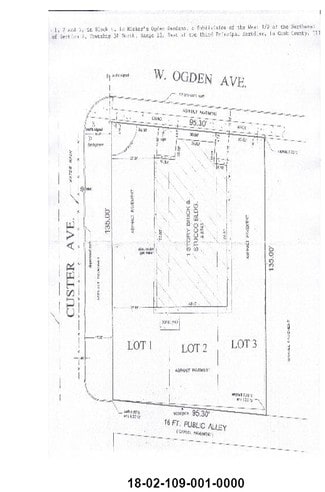 Commercial property located on a high-traffic corner with outstanding visibility along Ogden Ave. Zoned B-1 (Retail Business District). 12,825 sq. ft. lot with an approximately 3,200 sq. ft. freestanding building. Parking lot is accessible from three sides-offering great flexibility for development and business operations. Ideal for retail storefront, restaurant or gas station, this site delivers the exposure and access your business needs to thrive. Plat of survey available. Premium location in one of the area's busiest thoroughfares.