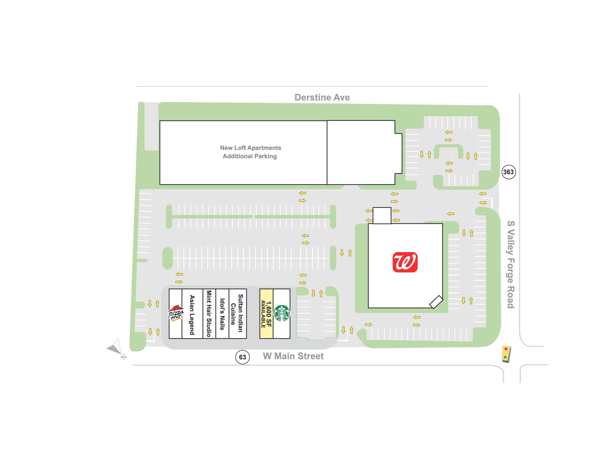 The property is located at the signalized intersection of S. Valley Forge Road and Main Street ( Route 63) in downtown Lansdale, PA.