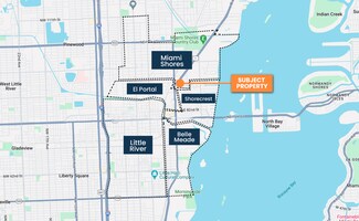 Located on Biscayne Blvd in Miami Shores, these two retail spaces are found on a busy roadway with over 50,000 vehicles driving daily. The subject property is near retailers such as Publix Supermarkets, Dollar Tree, Big Daddy's Liqours, and the Midpoint Shopping mall. The property is about 10 minutes from Barry University & Miami Design District, 15 minutes from Midtown & Edgewater, and about 25 minutes from Miami International Airport.