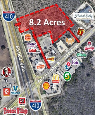 Located at the corner of SW Loop 410 & Old Pearsall Rd. Perfect for retail location, flex, industrial, hotel, apartment complex, etc. Strategically located on SW Loop 410 Access Rd. at Old Pearsall Rd. Excellent visibility & adjacent to area retailers and restaurants. High Traffic & Visibility on SW Loop 410 & Old Pearsall Rd. Less than 5 minutes from the Brand New 560 acre Pearsall Park, a revolutionary city park for San Antonio's Southwest Side. One exit from a Wal-Mart Supercenter and two exits from HEB.