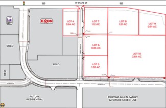 New retail development project in Star offering 0.64 to 3.84 acre pad sites for ground lease, and build to suit opportunities from 2,000 to 12,500 SF, site offers prime unobstructed visibility, easy access at a new signalized intersection, on-site parking, & pylon signage. Potential uses include retail, drive through restaurants, & service type tenants - contact agents for build-out options, terms, & lease rates. Just west of the highly traveled intersection of West State Street & Highway 16. Thousands of newly platted residential & commercial units/lots located within a 5-mile radius of site. “800 homes, 2,400 people and maybe a new school: coming to Star near Idaho 44. Prime location at the gateway to downtown Star, surrounding tenants include Albertsons, Bi-Mart, Ridley’s, Cafe Rio, US Bank, Capriotti’s Sandwich Shop, Teriyaki Madness, McDonald’s, Starbucks, Pizza Hut, Domino’s, Les Schwab, O’Reilly Auto Parts, and surrounded by other local & national retailers & restaurants, medical service providers, schools, & encompassed by other new mixed-use developments. Growing demographics - projected 2029 population 96,490, households 33,317, median HH income $128,421, and a median age of 40.