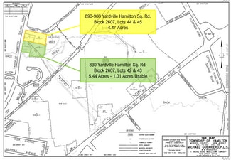 • Block 2607, Lots 44 & 45 • 4.47 Acres of Land • Zoning: R&D • Taxes: $12,950.09 annually • Adjacent 5.44 Acres Available $250,000 • Conveniently located just off Exit 3A on I-195 with easy access to I-295 and NJ Turnpike • Minutes from Hamilton Marketplace which consists of 970,000 SF of Retail and Dining.