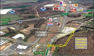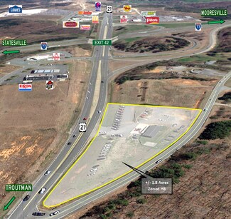 Highly visible lot approximately 1.8 acres at exit 42 in Troutman. Directly off of I-77 with access to Hwy. 21. and Flower House Lp. Utilities are available with the Town of Troutman. NCDOT will align Flower House Lp. and Houston Rd. with a lighted intersection. Troutman is currently seeing major growth coming up I-77 in both residential and commercial development.